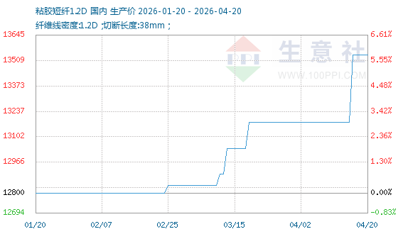 4月20日生意社粘胶短纤1.2D基准价为13540.00元/吨
