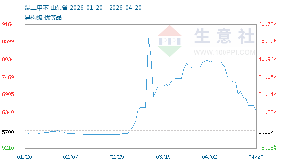 4月20日生意社混二甲苯基准价为6575.75元/吨
