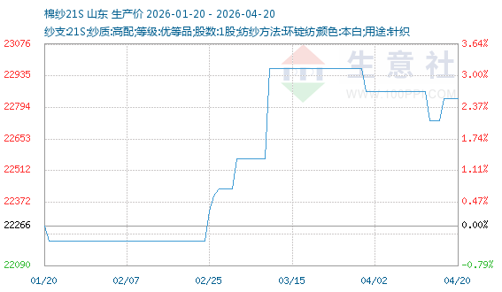 4月20日生意社人棉纱基准价为17550.00元/吨