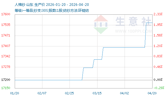 4月17日生意社人棉纱基准价为17550.00元/吨